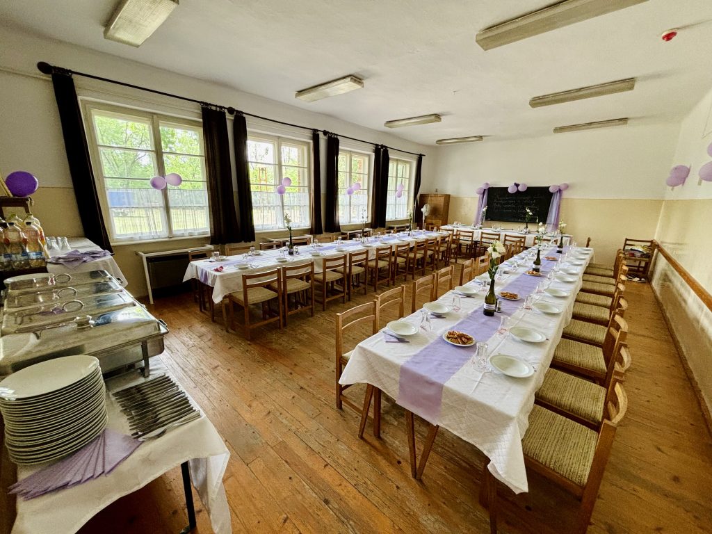 Amennyiben családi összejövetelek szervezésén, vagy egyéb étkezést is magában foglaló program megvalósításán gondolkodik, akkor kiváló lehetőséget jelenthet az Ön számára Étkezőnk, amely a Főépület teljes szélességében, összesen 64 ültetett férőhellyel rendelkezik. Az Étkező természetes megvilágításáról két oldalon 4-4 nagyméretű ablak gondoskodik, melyek páratlan kilátást nyújtanak a parkunkra és az Iskolaépület által határolt udvarra.